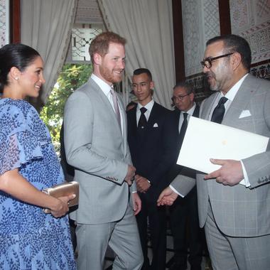 Lors de leur séjour au Maroc, le couple Sussex avait pu rencontrer le roi Mohammed VI, à l’occasion d’une cérémonie du thé. (Rabat, le 25 février 2019.)