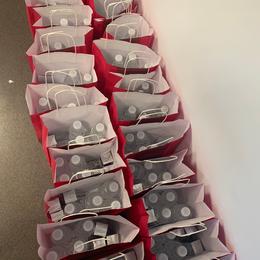 Tous les cadeaux de départ offerts par nos partenaires ont été réunies dans un seul sac pour éviter de passer de mains en mains.