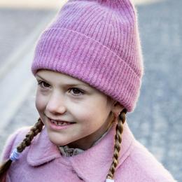 Pour la princesse héritière de Suède, la tresse s’impose de multiples manières, comme ici, portée sur l’épaule… (Stockholm, le 23 février 2020.)