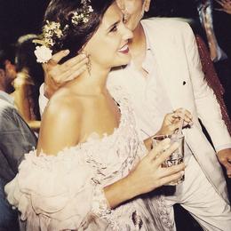 L’actrice et mannequin Marisa Berenson avait accessoirisé ses boucles par des grandes orchidées en soie pour son mariage avec James Randall. (Beverly Hills, le 21 novembre 1976.)