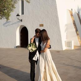 Anecdotes : Elle a 22 ans et lui 32 lorsqu’ils se disent « oui » sous le soleil d’Ibiza, très exactement au village Es Cubells Eivissa. Le mannequin italien apparaît dans une robe blanche signée du créateur français Jacquemus.