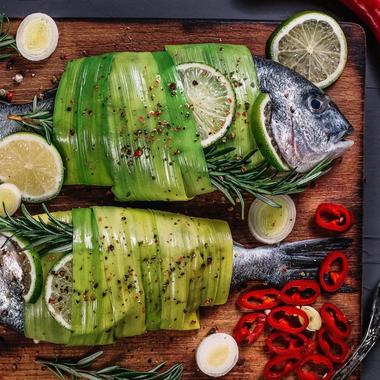 Trop facile d’associer le poisson et le poireau avec cette recette de daurades en robe de poireaux. Le petit plus ? Un verre à liqueur de Noilly Prat et un peu de menthe.