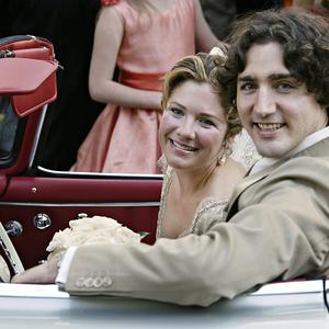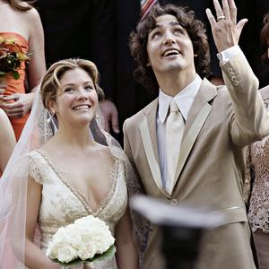 Sophie Grégoire rencontre Justin Trudeau par l’intermédiaire du frère de ce dernier, qui était son camarade de classe. En 2005, ils se passent des alliances dignes du Seigneur des anneaux aux doigts. (Montréal, 28 mai 2005.)