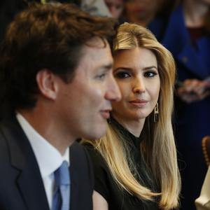 Même Ivanka Trump avait l’air «affamée» – c’est en ces termes que la presse américaine l’a qualifiée – devant l’irrésistible premier ministre canadien, lors d’une table ronde sur les femmes dans l’entreprise. (Washington, 14 février 2017.)