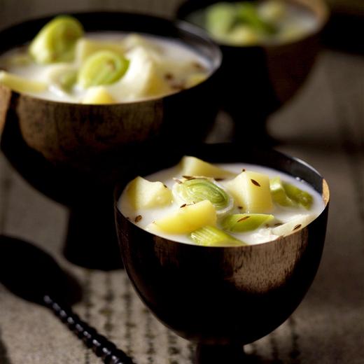 Voir la recette du bouillon aux poireaux, céleri au cumin