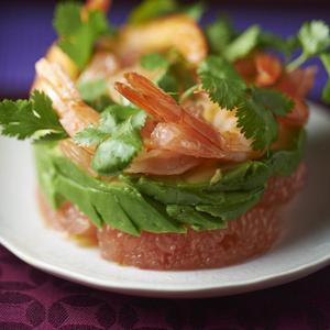 Voir la recette de la salade de crevettes, pamplemousse et avocat.