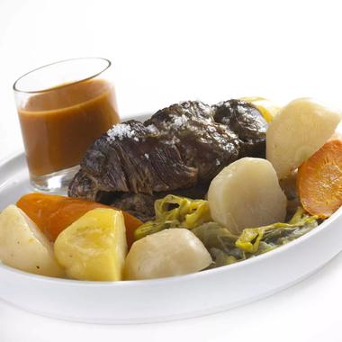Le pot-au-feu fait partie des indémodables de la gastronomie française. En effet, sa recette remonte au XIIIe siècle. Dénommée «viande au pot» au Moyen-Âge, ce bouillon de viande et de petits légumes était l’unique repas des plus démunis en hiver. Dans les cuisines paysannes, cette préparation cuisait en continu, de jour comme de nuit à l’intérieur d’un chaudron accroché à une crémaillère, suspendu au-dessus du feu. Au gré des repas, les légumes et la viande étaient consommés, puis remplacés par de nouveaux ingrédients avec le même fond de cuisson. Aujourd’hui, le pot-au-feu est cuisiné à l’aide d’une cocotte sur une cuisinière moderne, puis dégusté en marge d’un seul et unique repas.