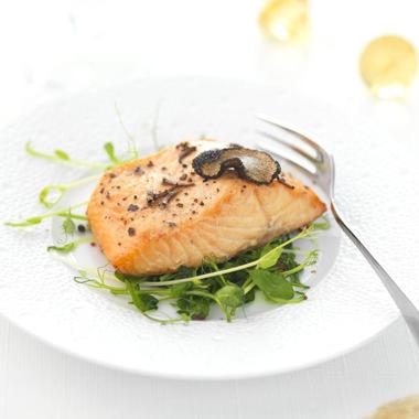Voir la recette du pavé de truite mariné à la truffe.