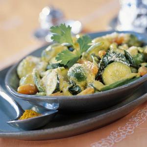 Voir la recette du curry de légumes à la noix de coco et à la coriandre.