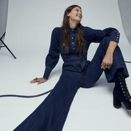On l’a vu où ? Chez Temperley London, qui opte pour un look total denim qui joue sur l’idée d’une sihouette unisexe.