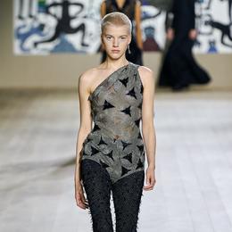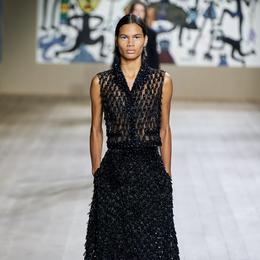 L’allure. «Je suis obsédée par la broderie, souligne Maria Grazia Chiuri. C’est très personnel, je suis italienne, une partie de ma famille vit dans le sud, j’ai toujours vu les femmes broder, ma grand-mère, mes tantes, ma mère… C’est tout un langage à travers lequel les femmes s’expriment.» Cette obsession se traduit dans l’omniprésence de pièces brodées : que cela soit sur des justaucorps drapés aux formes géométriques enrichis de perles de cristal ou sur des jupes longues en crêpe aux broderies « mouvantes » de tubes argentés, la maestria des ateliers haute couture Dior s’exprime en 3D. Ici, la broderie n’est plus un élément décoratif, elle donne son architecture au vêtement, son mouvement aussi. L’excellence des artisans de la couture s’illustre aussi dans la rigueur des coupes et la pureté des lignes des tailleurs qui tombent net et des robes longues qui se font seconde-peau.