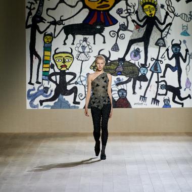 Le décor. En ces temps troublés par de multiples crises (sanitaires, géopolitiques, sociales…), l’exercice de la haute couture pourrait sembler anachronique, voir incongru. Au contraire, il prend plus que jamais son sens : donner à rêver, insuffler une poésie qui manque cruellement à l’époque, mais surtout remettre l’humain au cœur de la création en valorisant le travail de la main. Le décor du défilé Haute couture Dior illustre à la perfection cette idée. D’immenses tableaux entièrement brodées reproduisent les œuvres colorées du couple d’artistes indiens, Madhvi Parekh et Manu Parekh. Fidèle à ses engagements féministes Maria Grazia Chiuri, la directrice artistique des collections féminines Dior, a fait réaliser ces panneaux par 380 élèves de l’école de broderie Chanakya à Bombay, qui forme des jeunes femmes à la broderie dans un pays où ce métier se transmet habituellement de père en fils. Un décor spectaculaire, que le grand public va pouvoir découvrir jusqu’au 30 janvier au musée Rodin, à Paris, et qui donne le ton de la collection.