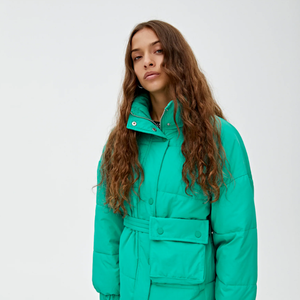 Blouson matelassé vert avec ceinture, Pull & Bear, 49,99 €. Disponible sur pullandbear.com.