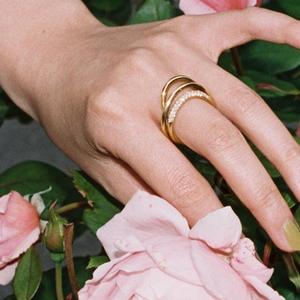 En vue : La même minutie anatomique que la marque appose entre ses bijoux fantaisie et sa gamme bridal pour sublimer et reproduire la beauté des creux, des courbes ou des mouvements à même les montures de ses bijoux graphiques.