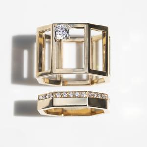 En vue : Difficile de choisir entre les alliances au pavage alluré et les solitaires pensés en griffes minimalistes que la créatrice Katherine Kim façonne à la main dans ses ateliers de Los Angeles.