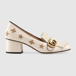 Escarpins à talons moyens en cuir brodé, Gucci, 690 €. Disponible sur gucci.com.