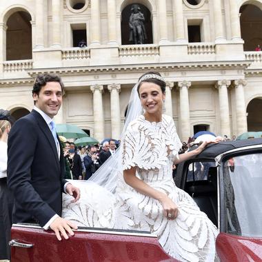 Le jour J : Jean-Christophe Napoléon Bonaparte et la comtesse Olympia von und zu Arco-Zinneberg se sont dit «oui» à la cathédrale Saint-Louis des Invalides, 209 ans après leurs aïeuls, Napoléon Bonaparte (dont Jean-Christophe est l’arrière-arrière-arrière petit-neveu) et Marie-Louise d’Autriche. Pour cette union «historique», la mariée portait une longue robe blanche à broderies signée Oscar de la Renta et avait coiffé son chignon d’un diadème. Plusieurs familles royales européennes avaient fait le déplacement : le Grand-Duc de Luxembourg ; la princesse Béatrice d’York, petite-fille de la reine Elizabeth II, au côté de son fiancé Edoardo Mapelli Mozzi ; le prince Laurent de Belgique ; le duc et la duchesse de Bragance ; la princesse Maria-Pia de Savoie, fille du dernier roi d’Italie ; ou encore le prince Christian de Hanovre et son épouse, la princesse Alessandra de Osma. (Paris, le 19 octobre 2019.)