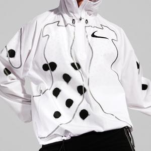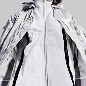 Yoon Ahn chez Ambush privilégie les couleurs rose et jaune fluo pour donner un certain pep au look des sportifs. Matthew Williams, fondateur d’Alyx, choisit la sobriété du noir sans négliger les détails avec des fermetures zippées, poches et sangles qui viennent structurer la pièce. Tout comme Jun Takahashi qui imagine une veste Undercover aux inscriptions colorées venant contraster un noir prédominant. Pour cette capsule, Virgil Abloh, à la tête d’Off-White, mise sur des lignes abstraites et des touches noires s’apparentant à des gouttes de peinture, qui apportent un aspect à la fois futuriste et street au modèle. Chitose Abe, directrice artistique de Sacai, reste sur un modèle traditionnel avec une double veste imperméable gris clair qui protégera les athlètes en cas de pluie.