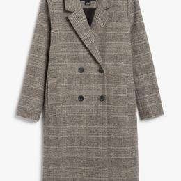 Manteau en laine à carreaux, Mango, 99,99 €. Disponible sur mango.com.