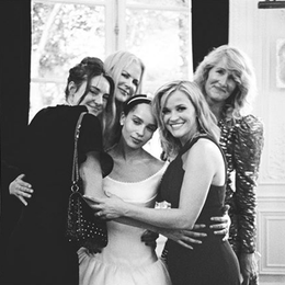 Le casting de Big Little Lies réuni autour de la mariée. De gauche à droite, Shailene Woodley, Nicole Kidman, Zoë Kravitz, Reese Witherspoon, Laura Dern. (Paris, le 29 juin 2019.)