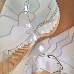 L’escalier en chêne imaginé par l’architecte Peter Marino.