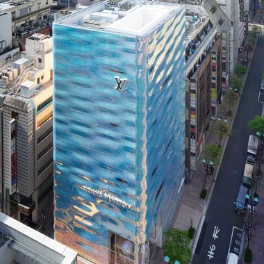 Louis Vuitton a rénové sa boutique historique dans le quartier de Ginza. Signé par les architectes Jun Aoki et Peter Marino, le bâtiment iridescent s’inspire des vagues de la baie de Tokyo.